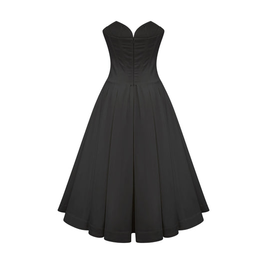 Katherine Black Off-Shoulder Corset Midi Dress (Final Sale-US Only)