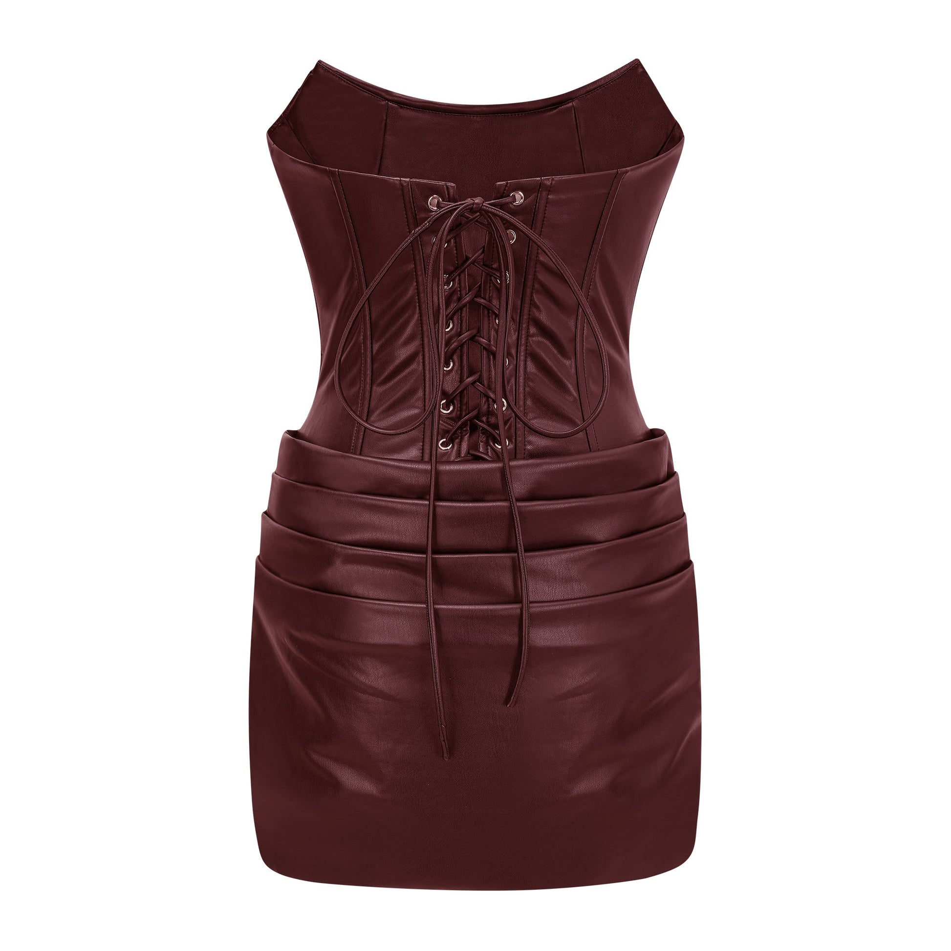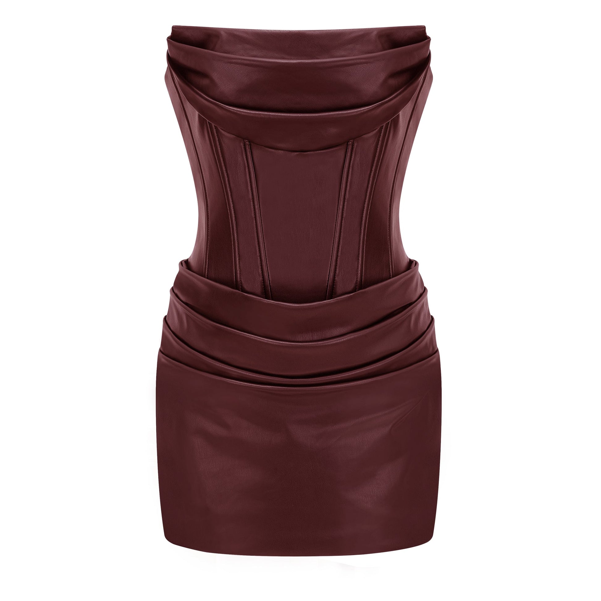 Agnes Brown Ruched Leather Bodycon Mini Dress