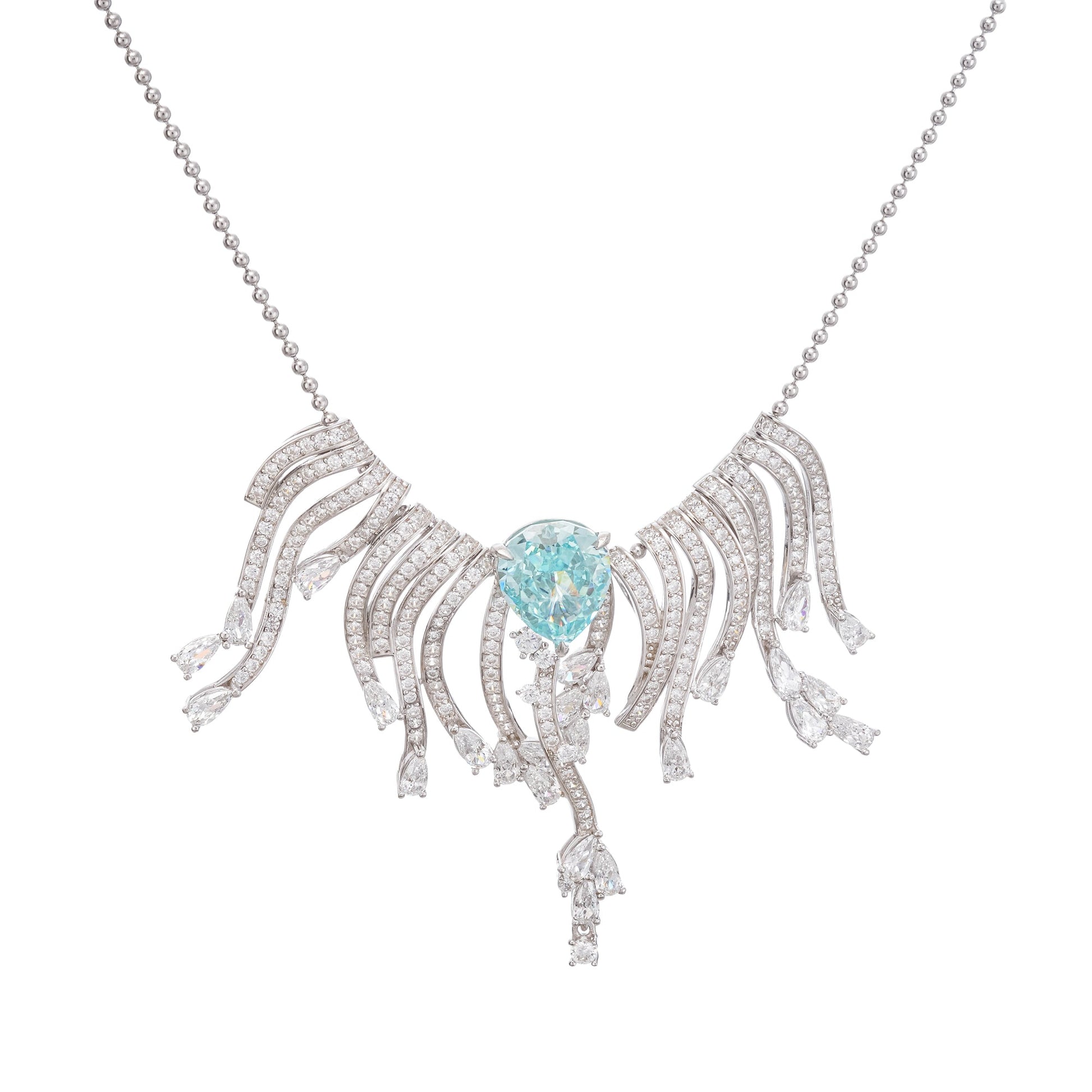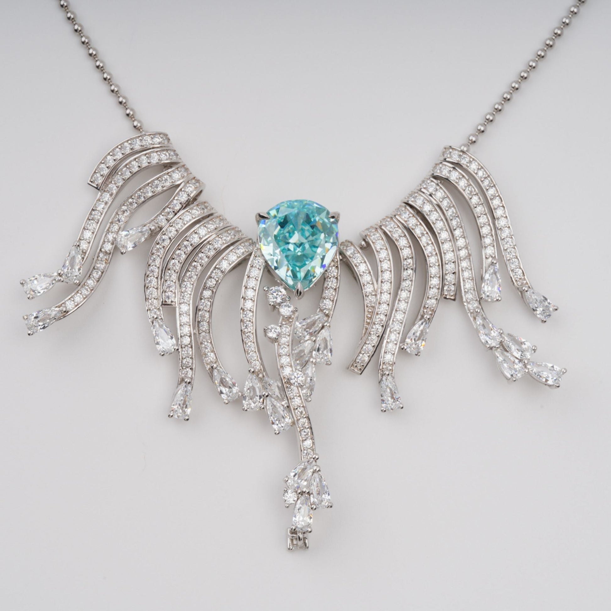 Beata Aquamarine Pear Cut Gemstone Asymmetrical Pendant Sterling Silver Necklace