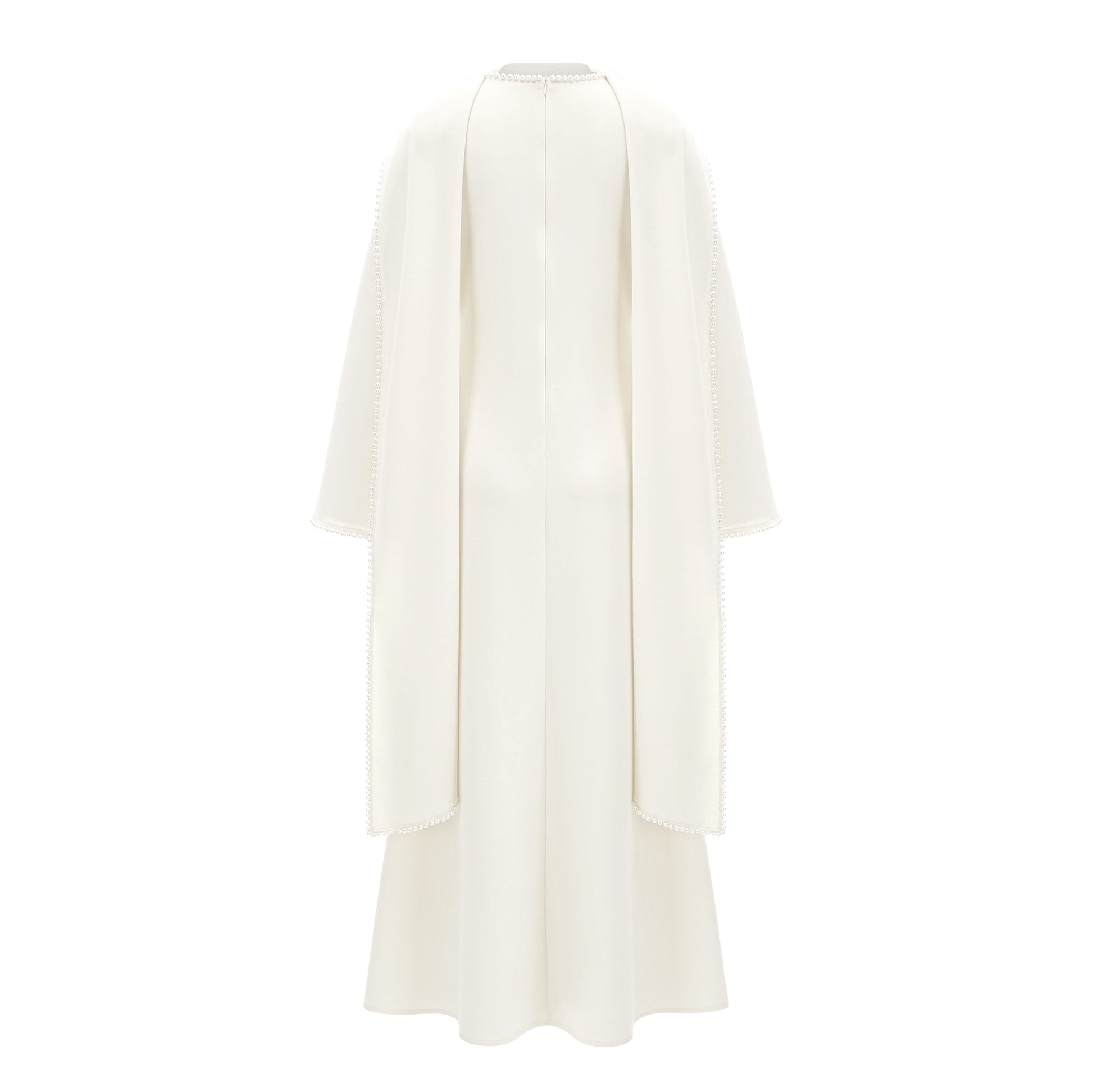 Piroska White Pearl Trim Shawl Detail Maxi Dress